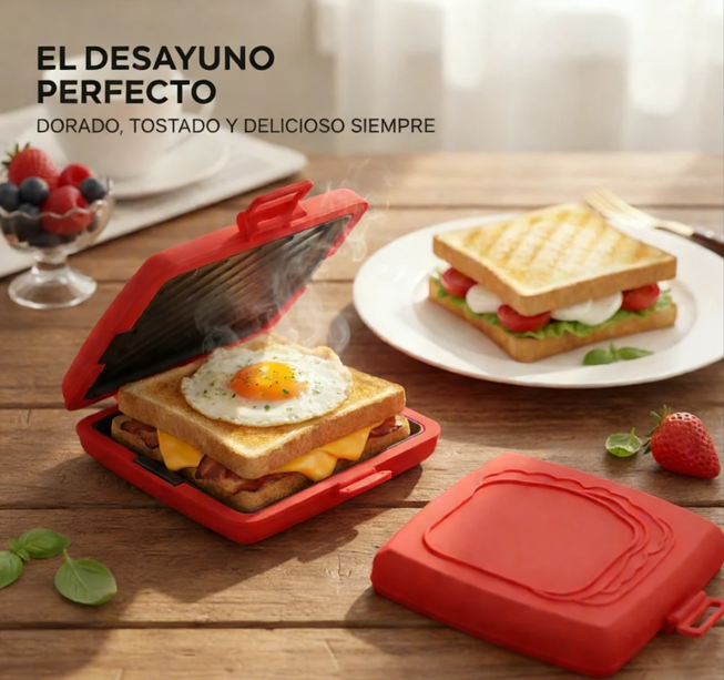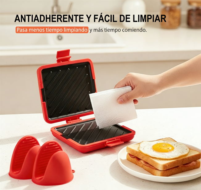 🥪Placa para Sandwich en Microondas | Doble Cara, Silicona Anticaliente, Multifunción ✨ Rápido y Portátil