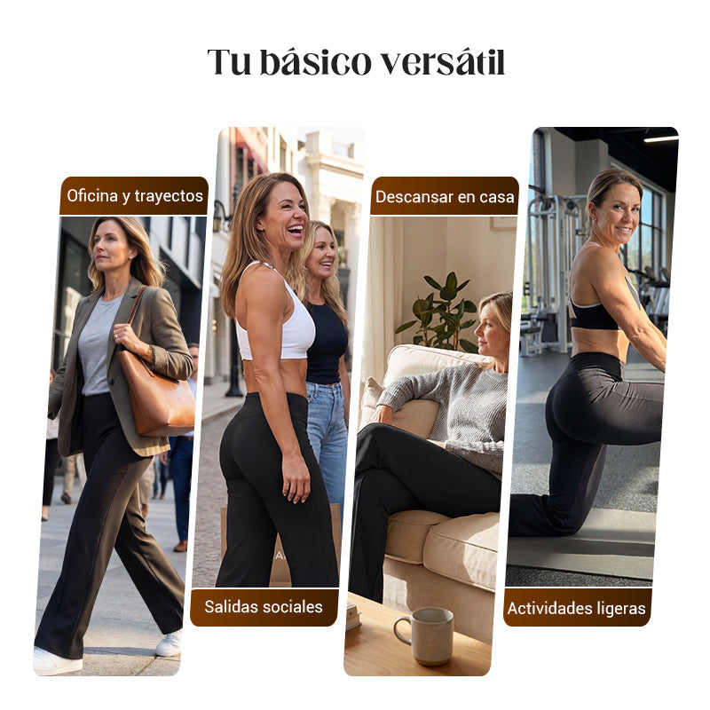 Pantalones casuales de mujer de cintura alta y pierna ancha - Tejido Elástico Cómodo + Bolsillos Prácticos - Ideal para Trabajo, Paseos y Casa! ✨