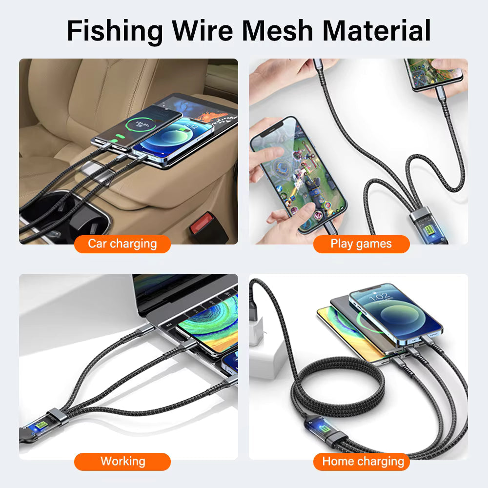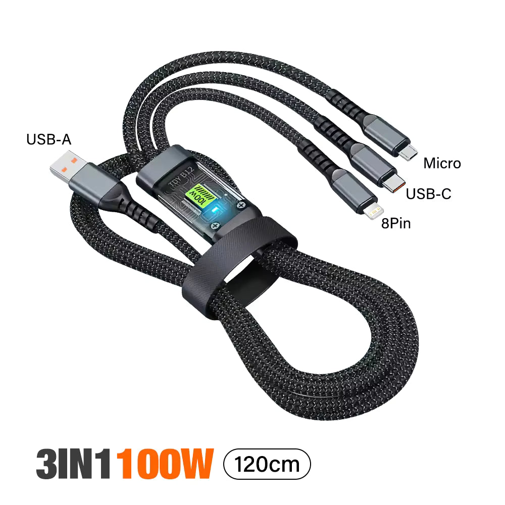 Cable de datos 3 en 1 de carga superrápida luminoso y transparente