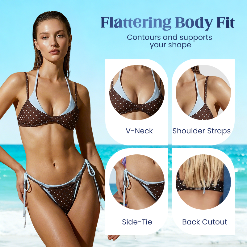 👙 Conjunto de Bikini de Lunares con Lazos Laterales para Mujer